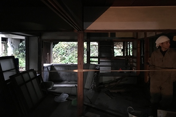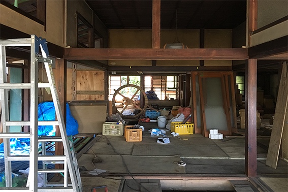 上の写真奥にある小麦袋が撤去され、建具が外されました。