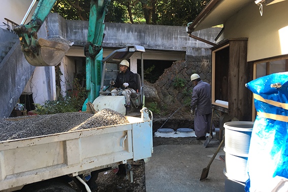 外部では浄化槽の設置作業が行われています。10人槽という大きなものが取り付きます。