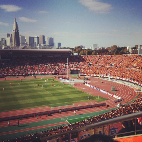 ナビスコ杯の決勝を、パノラマシートからビール片手に観戦。