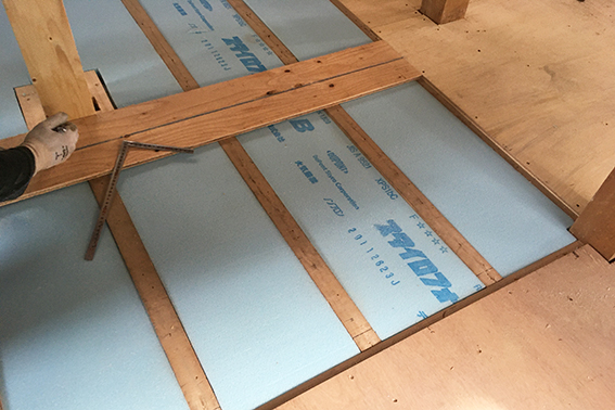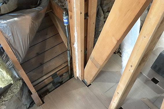 10時から千代ヶ丘の家の現場監理です。外部は板金屋さんがスレート板を屋根に並べ、室内では大工さんが床合板貼りや構造補強を行ってます。躯体の劣化はほとんどありませんでしたが、建物の歪みを直すのに柱を調整したり、床のレベルを揃えるために根太を調整したりでなかなか苦労されてます。