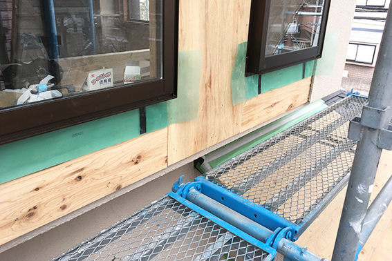 11時頃、お施主さんも来られて一緒に現場を確認しました。キッチンに興奮されてました。足場が外れる前に外部の確認やサインの検討も行いました。