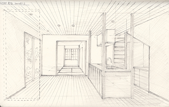 10時から千代ヶ丘の家(木造2階建て 改修)の実施設計打合せです。仕様と建具をひととおり確認するのに、図面とスケッチを元に、ZOOMを使ってオンラインで行ないました。仕上げ材の質感や肌触りは次回のキッチン打合せの時に、サンプルで確認します。9月中旬の工務店への見積り依頼を見据えて、実施設計打合せを行なっていきます。