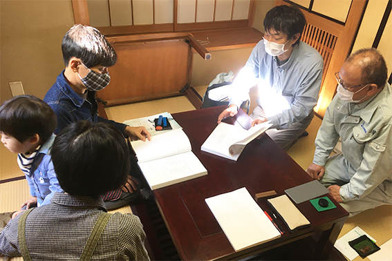 現地打合せはその翌週。今回は戸建て住宅の改修ですが、減築箇所、耐力壁の移設、断熱工事、電気、設備工事について確認。後日、各職方に現地に来てもらって見積りを行うことになりました。