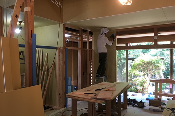 今回、間取り変更をともなう部分は構造補強も行ないました。