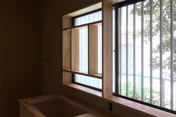 写真左側にある北向き窓は、元々浴室やトイレの窓でした。ここは台所になります。