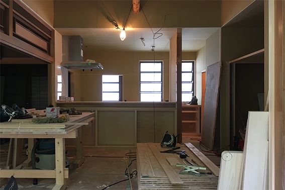 大工さんはメインの家具を製作中。写真中央はキッチンカウンター。