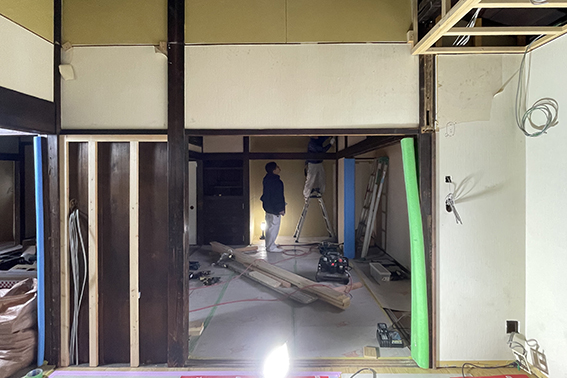 大正時代に建てられた平屋は、シンプルながら骨組みがしっかりしており、この先も十分に使えるとの見立て。室内の改修を中心に進めています。かつてギャラリーとしても使われていたため、ところどころに不思議な納まりがあり、当初は建設当時の姿に近づける方向で検討していました。