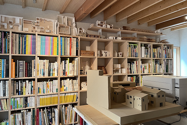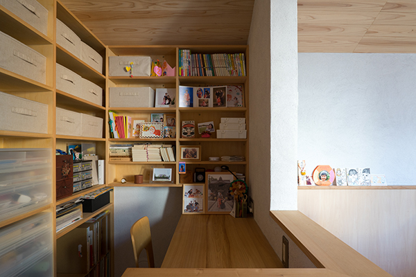 本棚に囲まれた妻の書斎コーナー。