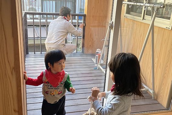 自然光で過ごせる子どもの遊び場兼打合せスペース。