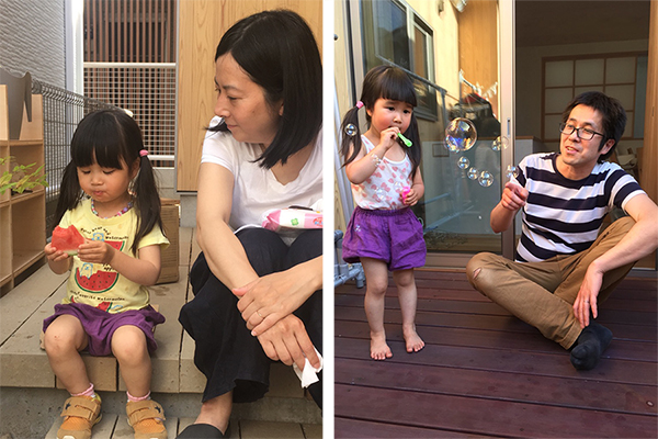 上のテラスはリビングやダイニングとともに頻繁に使われる。
