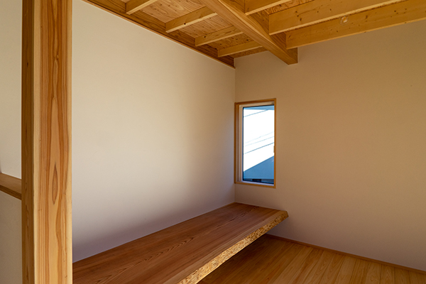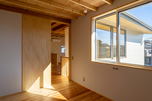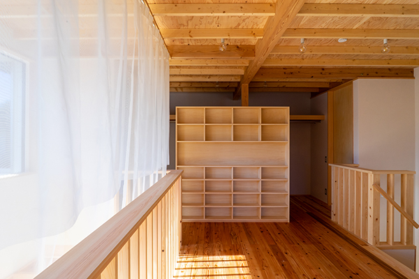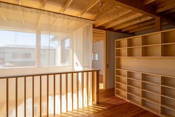 吹き抜けに面した上の間。リビングの延長としての利用を想定している。