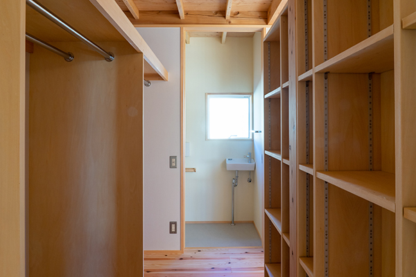 寝室-ファミリークローク-トイレと繋がる動線計画。